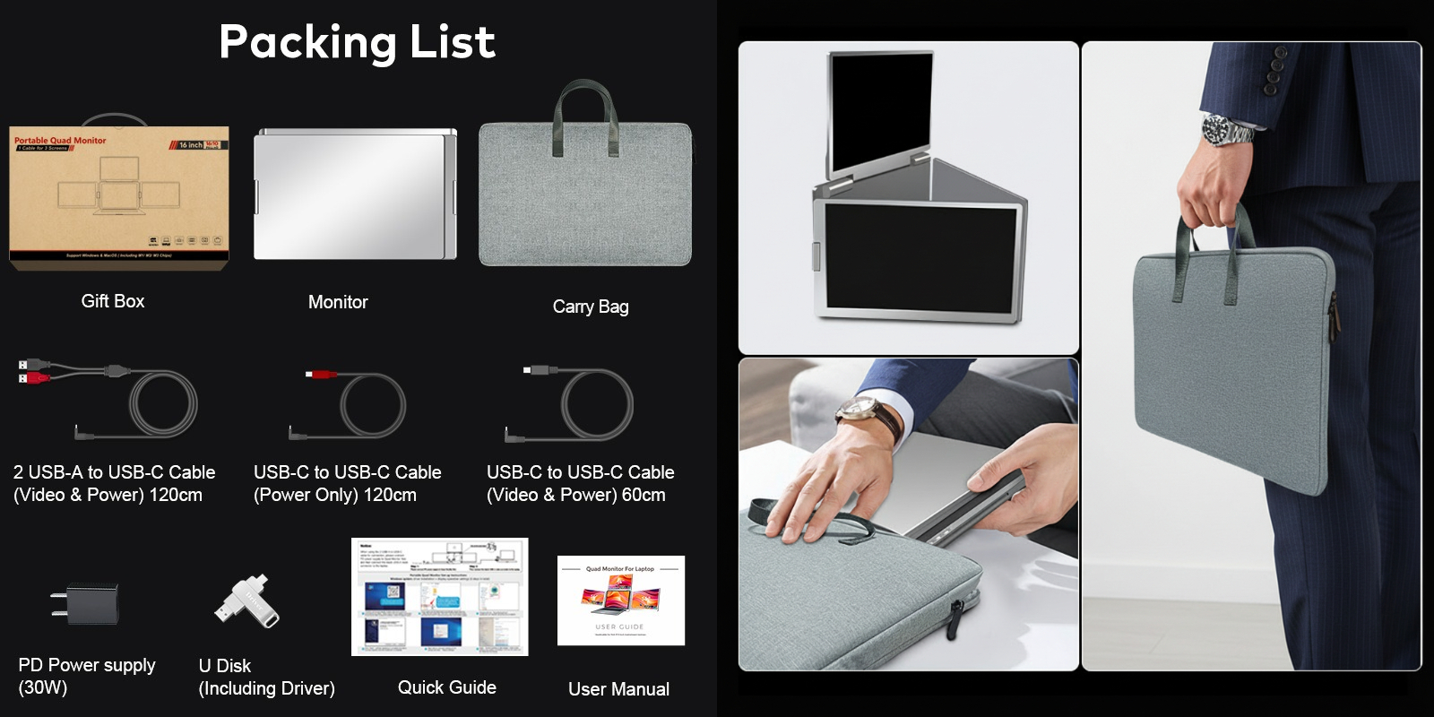 Tired of juggling multiple windows on a cramped laptop screen? The FOPO S788 is your ultimate portable triple-screen solution. Featuring 16" WUXGA (1920×1200) IPS displays, 100% sRGB color accuracy, and a sturdy metal support frame, the S788 transforms your laptop into a multi-tasking powerhouse—perfect for work, trading, design, or study, anywhere you go.