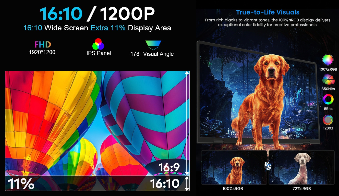 Higher Resolution (1920×1200 WUXGA) – Sharper than FHD
